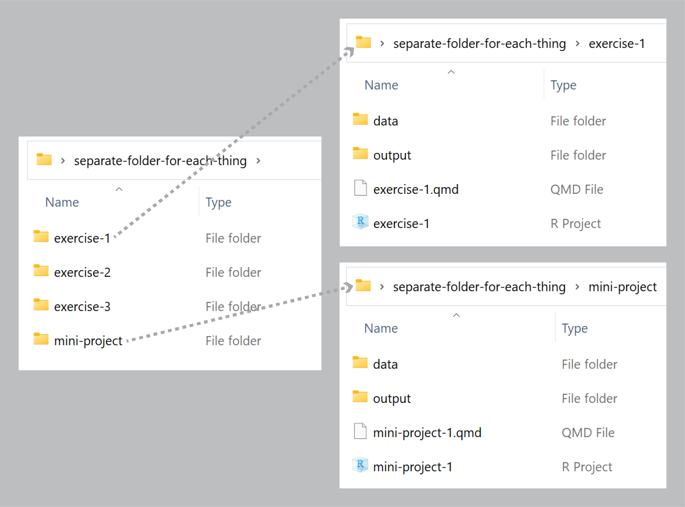 You can either create individual projects for each assignment and mini-project (recommended!):