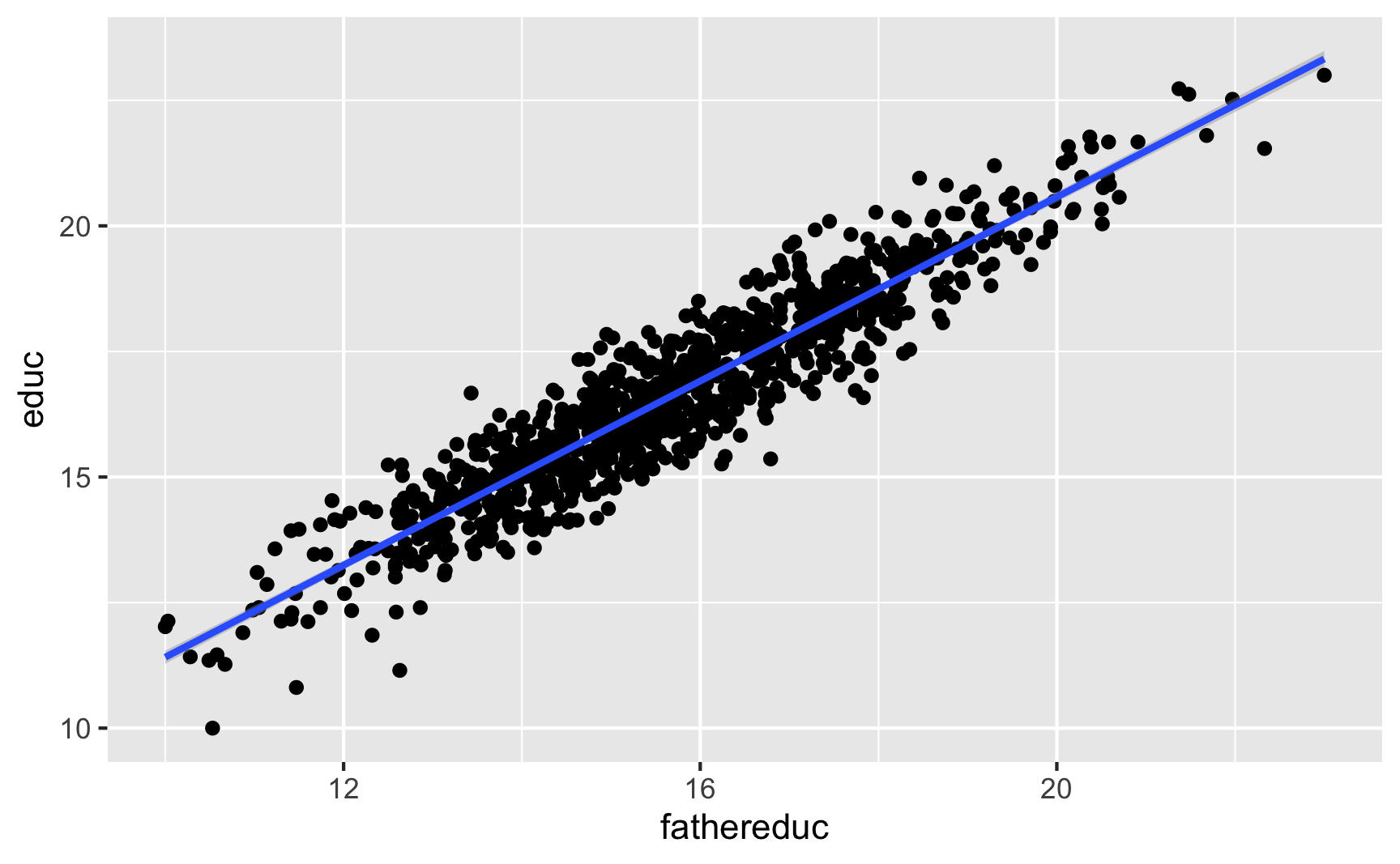 ggplot(ed_fake, aes(x = fathereduc, y = educ)) +