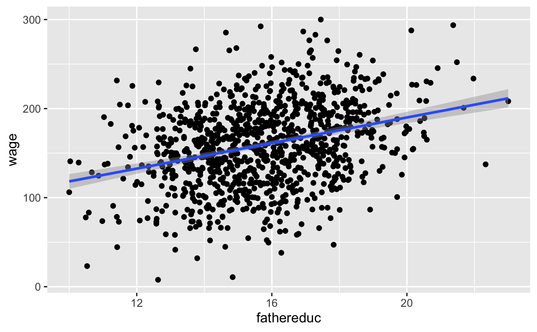ggplot(ed_fake, aes(x = fathereduc, y = wage)) +