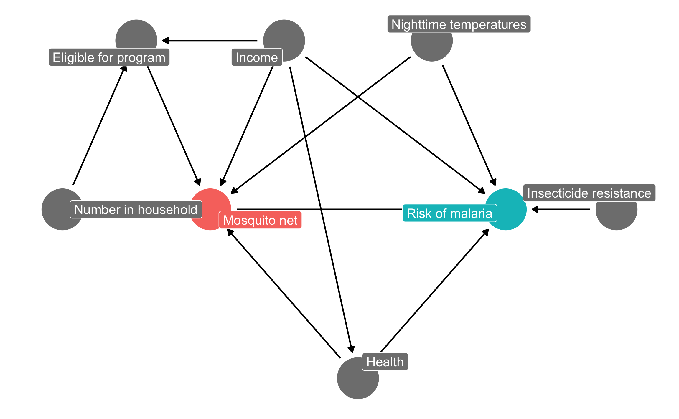 labels = c(malaria_risk = "Risk of malaria", net = "Mosquito net", income = "Income",