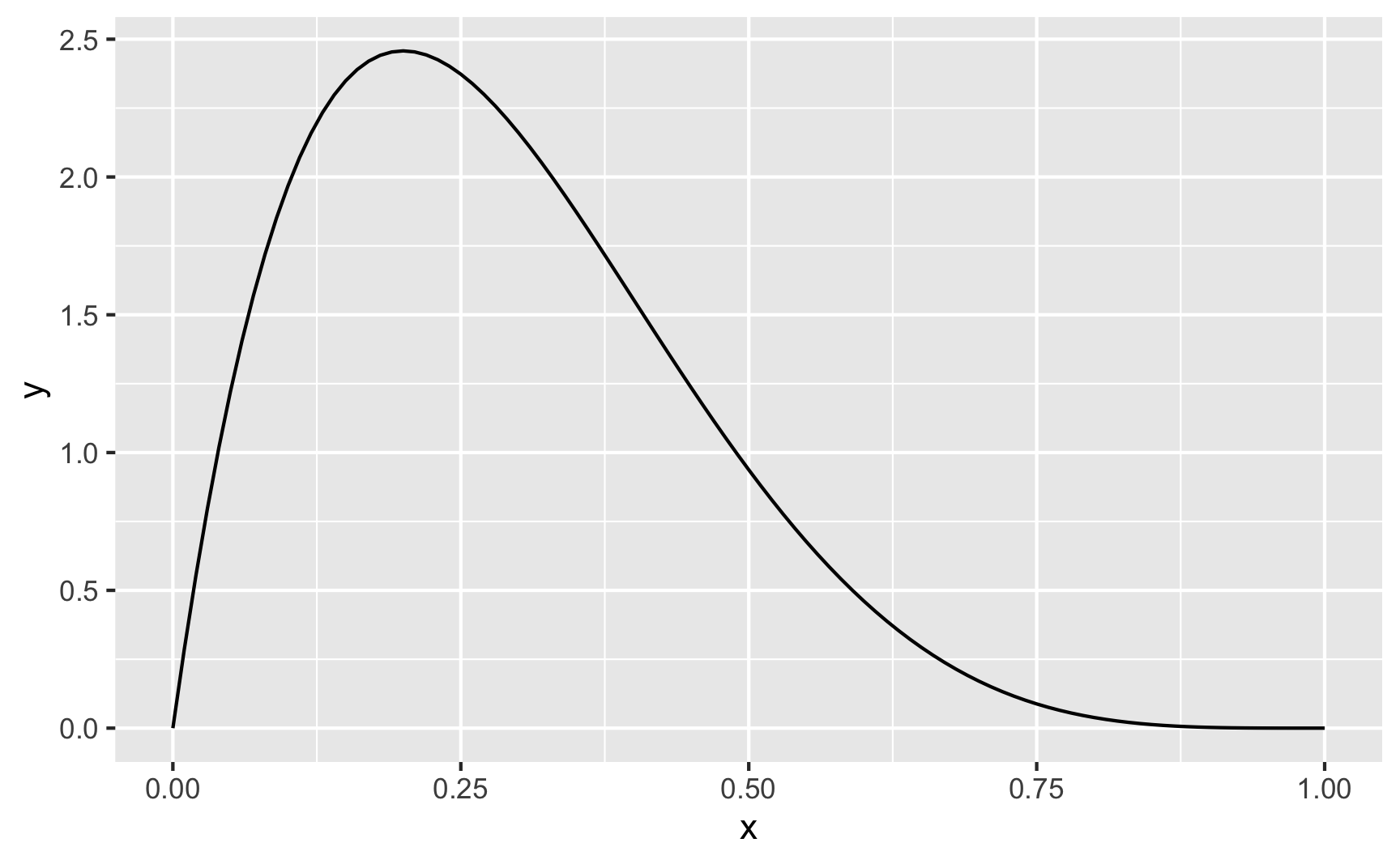 geom_function(fun = ~dbeta(.x, shape1 = 2, shape2 = 5))