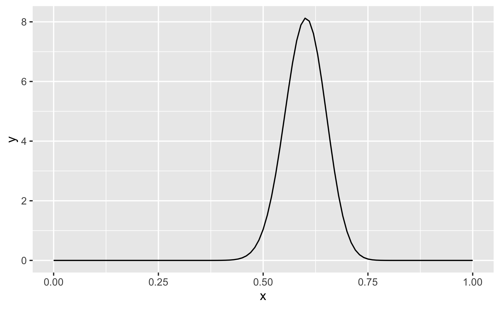 geom_function(fun = ~dbeta(.x, shape1 = 60, shape2 = 40))