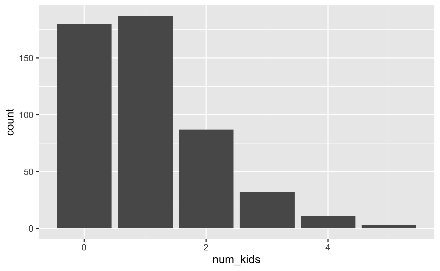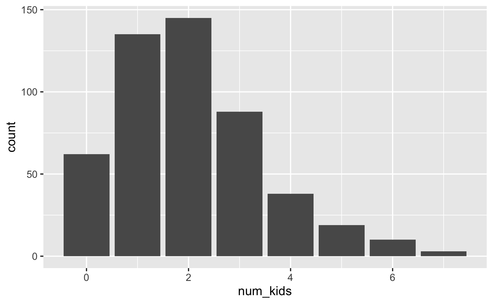 Let's assume that the number of kids a family has follows a Poisson process. Here's how we can use `rpois()` to generate that data:
