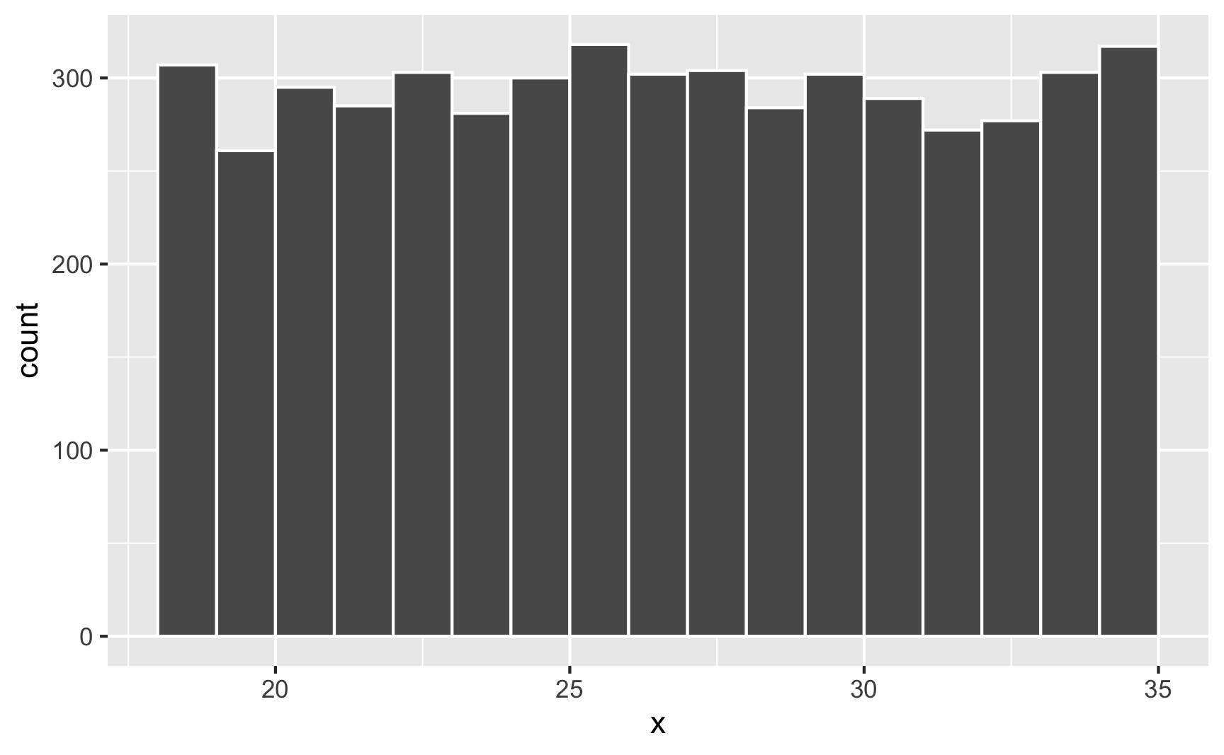 You can confirm that each number has equal probability if you make a histogram. Here are 5,000 random people between 18 and 35: