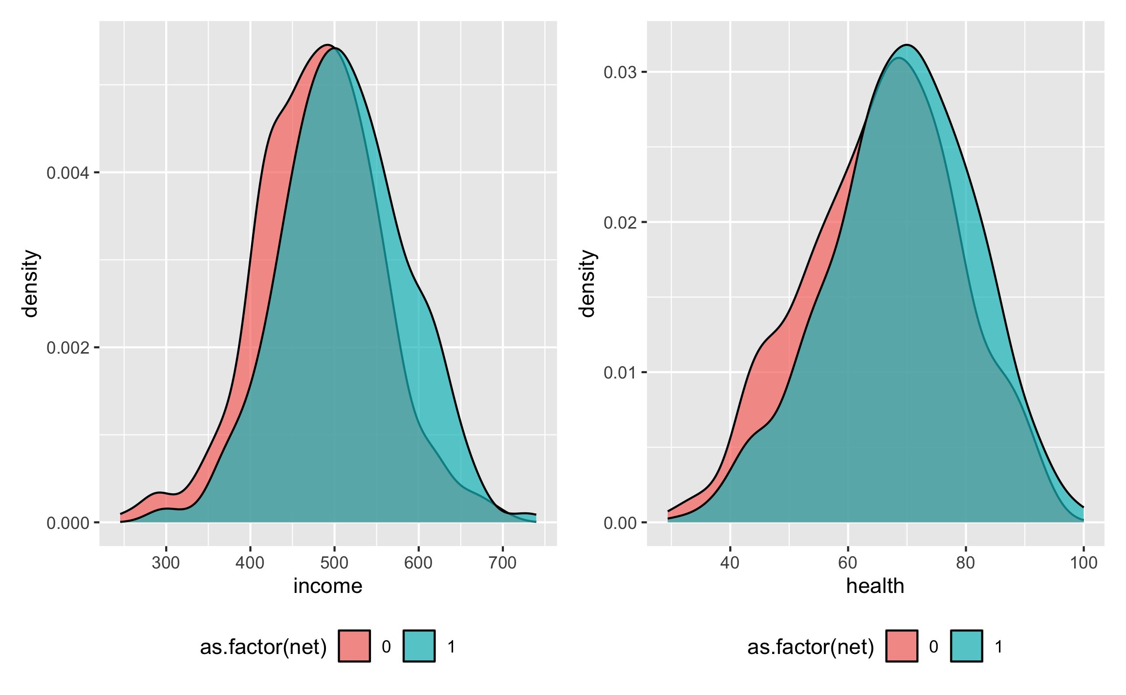 net_income <- ggplot(net_data, aes(x = income, fill = as.factor(net))) +