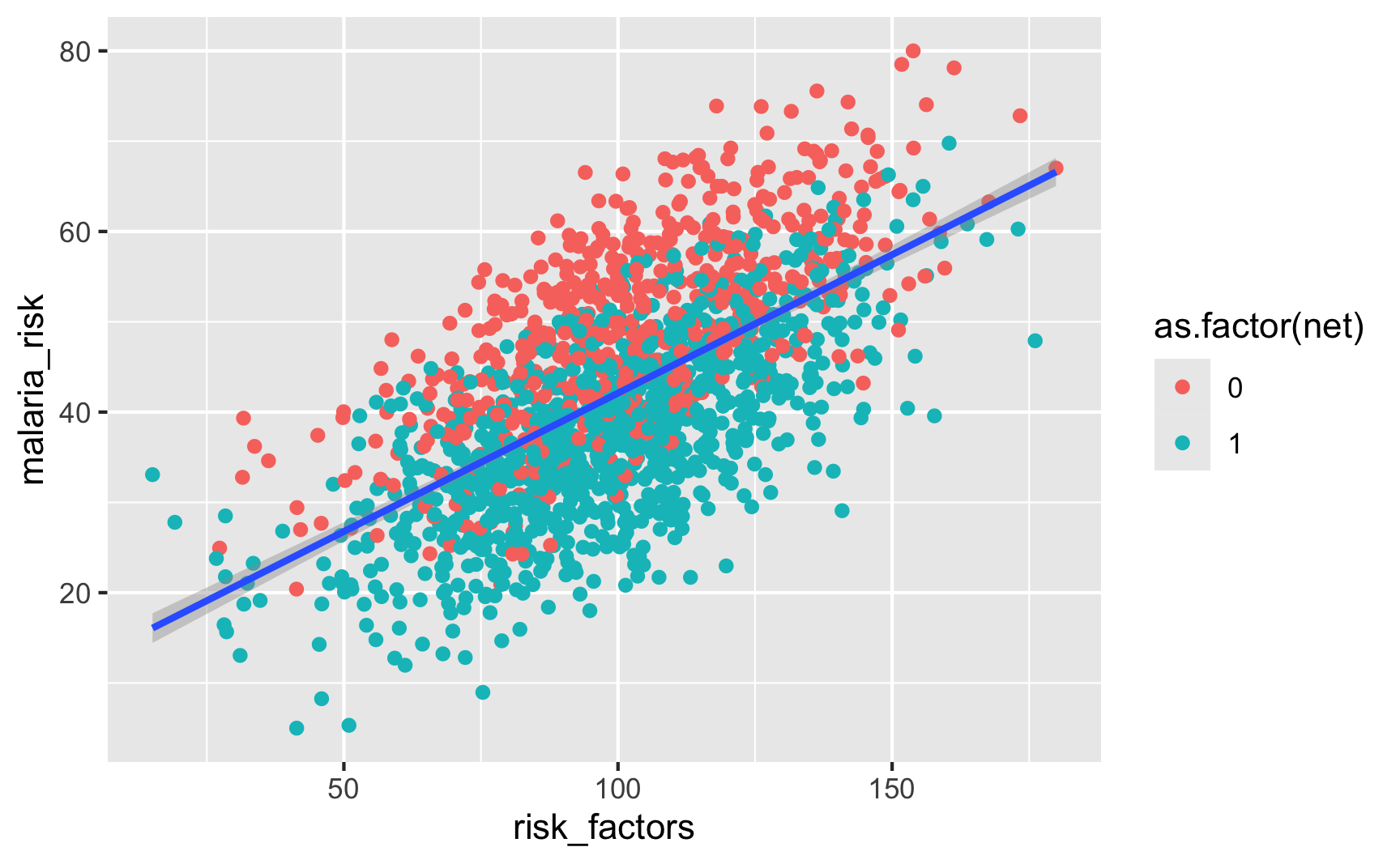 malaria_effect = (-20 * net) + (0.5 * risk_factors),