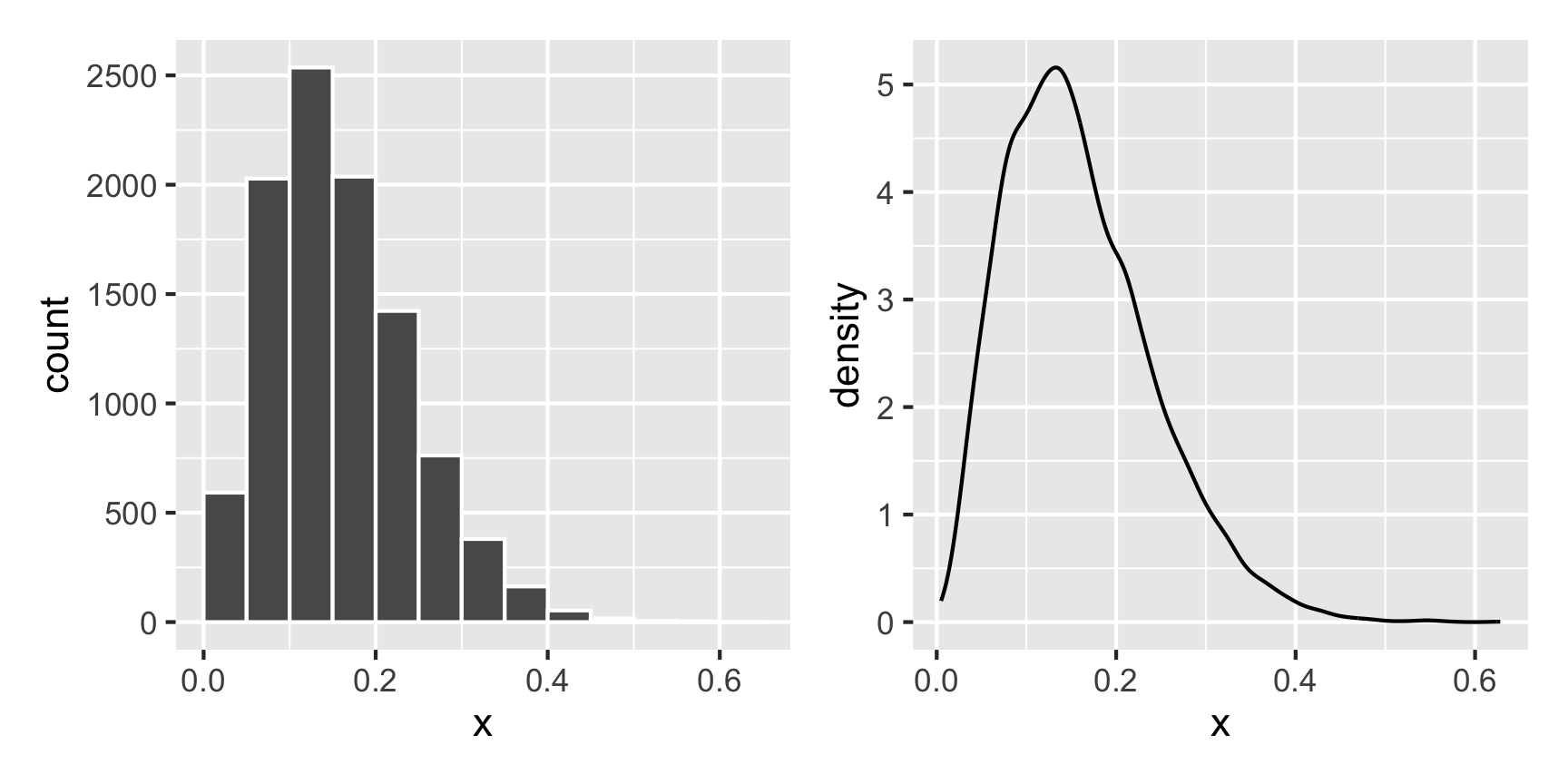 temp_data <- tibble(x = rbeta(10000, shape1 = 3, shape2 = 16))
