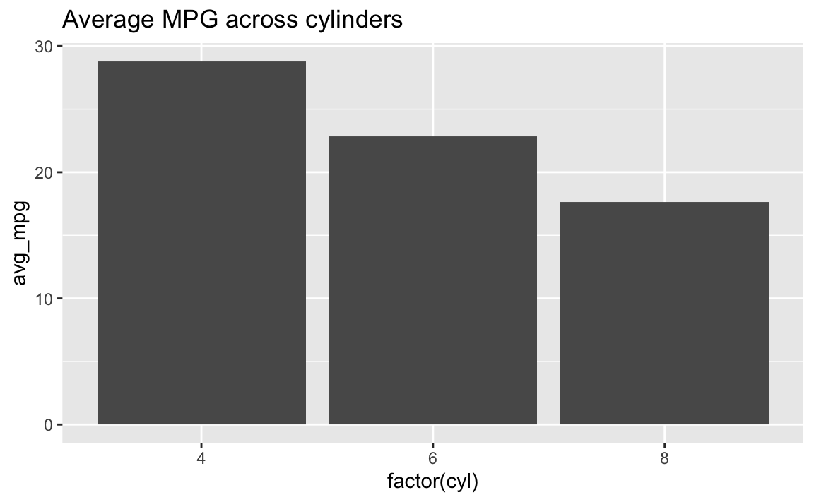 ggplot(data = summarized_data, aes(x = factor(cyl), y = avg_mpg)) +