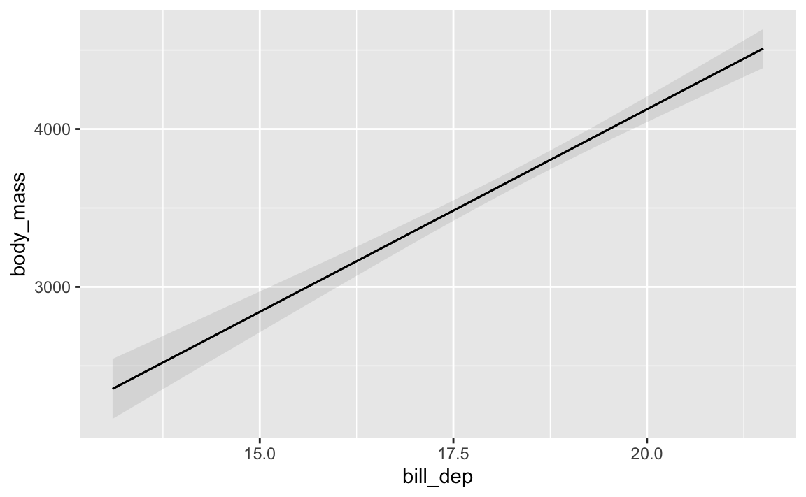 Like, here’s how predicted body mass changes across a range of possible bill depths: