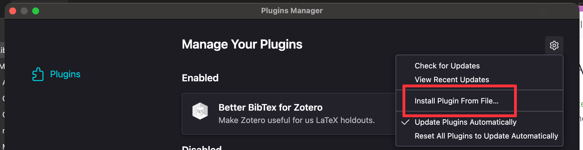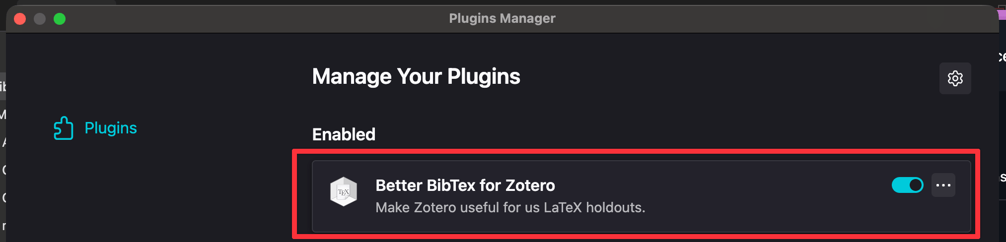 .xpifile that you downloaded.Better BibTeX should now appear in your plugin list: