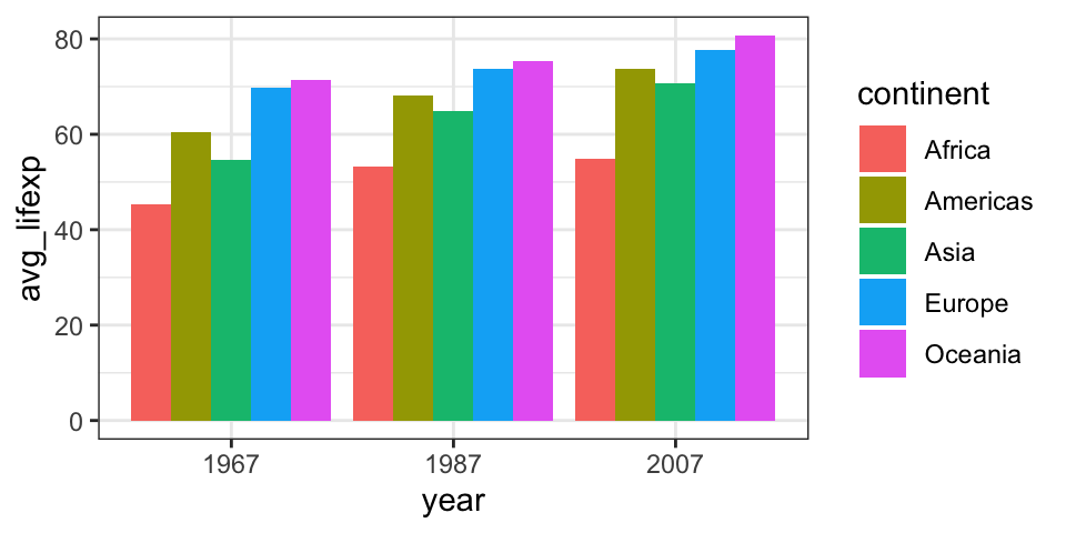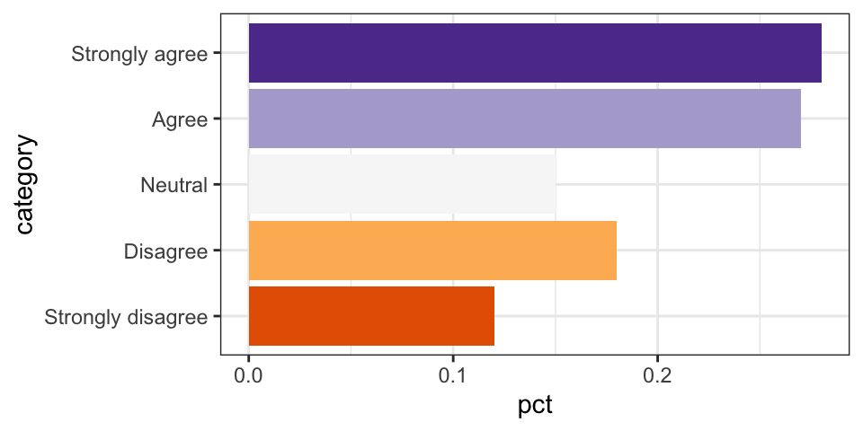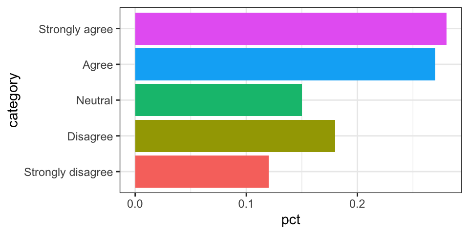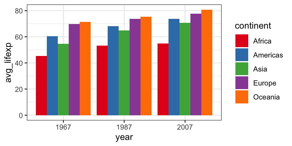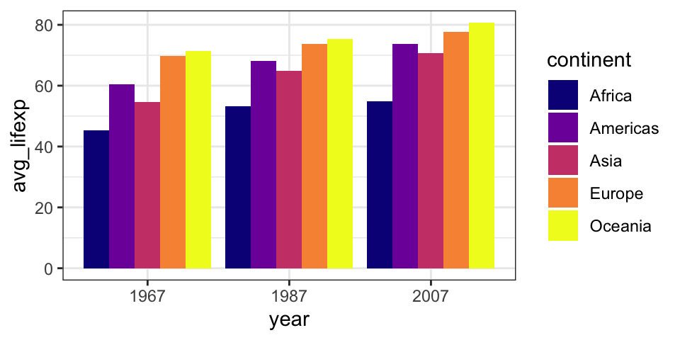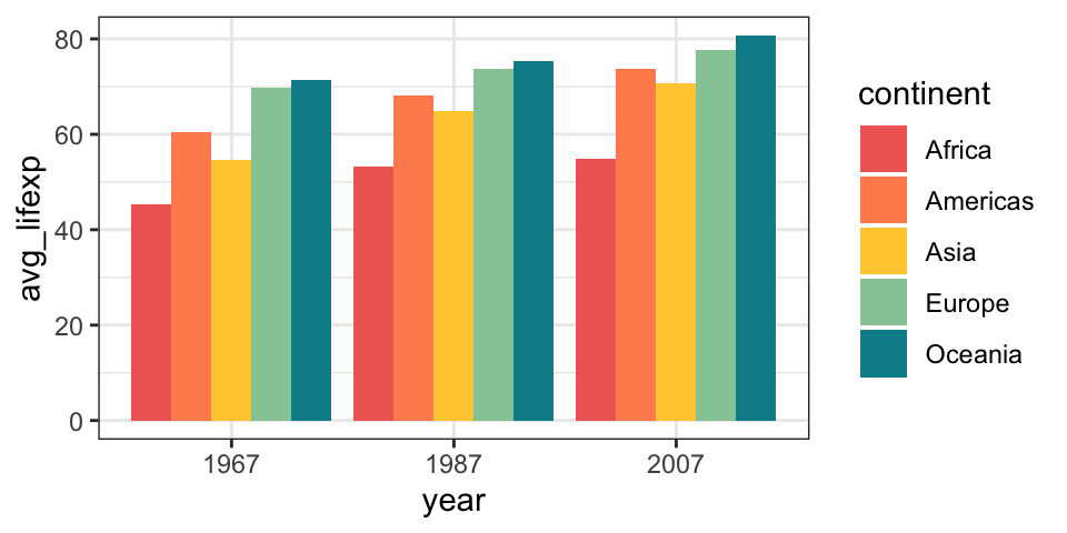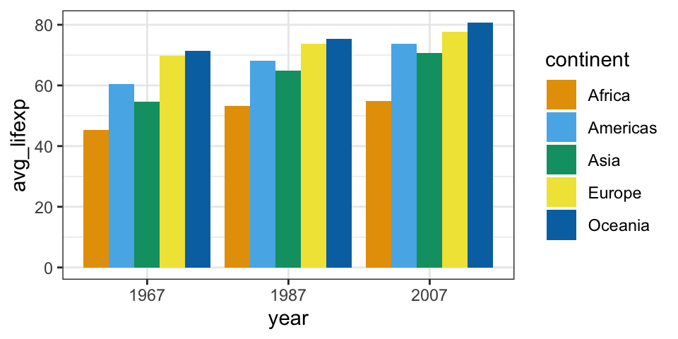 # Extract 5 colors from the Prism palette and use them with scale_fill_manual()clrs <-carto_pal(12, "Prism")plot_qualitative +scale_fill_manual(values = clrs[c(1, 4, 6, 7, 8)])