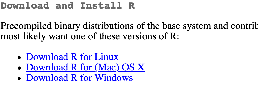 Go to the CRAN (Collective R Archive Network) website: https://cran.r-project.org/