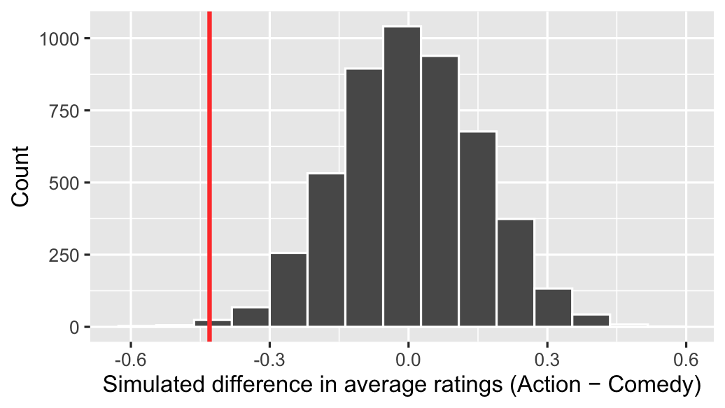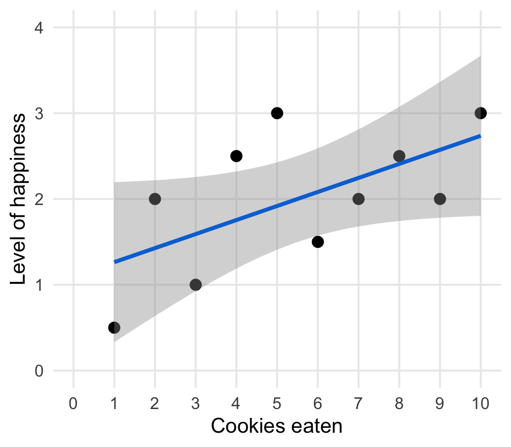 class: center middle main-title section-title-7 # Regression<br>and inference .class-info[ **Session 2** .light[PMAP 8521: Program evaluation<br> Andrew Young School of Policy Studies ] ] --- name: outline class: title title-inv-8 # Plan for today -- .box-2.medium.sp-after-half[Drawing lines] -- .box-6.medium.sp-after-half[Lines, Grϵϵκ, and regression] -- .box-5.medium.sp-after-half[Null worlds and statistical significance] --- layout: false name: drawing-lines class: center middle section-title section-title-2 animated fadeIn # Drawing lines --- layout: true class: title title-2 --- # Essential parts of regression .pull-left[ .box-inv-2.large[**Y**] .box-2[Outcome variable] .box-2[Response variable] .box-2[Dependent variable] .box-inv-2[Thing you want to<br>explain or predict] ] -- .pull-right[ .box-inv-2.large[**X**] .box-2[Explanatory variable] .box-2[Predictor variable] .box-2[Independent variable] .box-inv-2[Thing you use to<br>explain or predict **Y**] ] --- # Identify variables .pull-left[ .box-inv-2[A study examines the effect of smoking on lung cancer] .box-inv-2[Researchers predict genocides by looking at negative media coverage, revolutions in neighboring countries, and economic growth] ] .pull-right[ .box-inv-2[You want to see if taking more AP classes in high school improves college grades] .box-inv-2[Netflix uses your past viewing history, the day of the week, and the time of the day to guess which show you want to watch next] ] --- # Two purposes of regression .pull-left[ .box-inv-2.medium[Prediction] .box-2[Forecast the future] .box-2.sp-after[Focus is on **Y**] .box-inv-2.small[Netflix trying to<br>guess your next show] .box-inv-2.small[Predicting who will enroll in SNAP] ] -- .pull-right[ .box-inv-2.medium[Explanation] .box-2[Explain effect of **X** on **Y**] .box-2.sp-after[Focus is on **X**] .box-inv-2.small[Netflix looking at the effect of the<br>time of day on show selection] .box-inv-2.small[Measuring the effect of<br>SNAP on poverty reduction] ] --- # How? .box-inv-2.medium.sp-after-half[Plot **X** and **Y**] -- .box-inv-2.medium[Draw a line that approximates the relationship] .box-2.tiny[and that would plausibly work for data not in the sample!] -- .box-inv-2.medium.sp-after-half.sp-before-half[Find mathy parts of the line] -- .box-inv-2.medium[Interpret the math] --- # Cookies and happiness .center[ ``` ## [38;5;246m# A tibble: 10 × 2[39m ## happiness cookies ## [3m[38;5;246m<dbl>[39m[23m [3m[38;5;246m<int>[39m[23m ## [38;5;250m 1[39m 0.5 1 ## [38;5;250m 2[39m 2 2 ## [38;5;250m 3[39m 1 3 ## [38;5;250m 4[39m 2.5 4 ## [38;5;250m 5[39m 3 5 ## [38;5;250m 6[39m 1.5 6 ## [38;5;250m 7[39m 2 7 ## [38;5;250m 8[39m 2.5 8 ## [38;5;250m 9[39m 2 9 ## [38;5;250m10[39m 3 10 ``` ] --- layout: false <img src="02-slides_files/figure-html/cookies-base-1.png" alt="" width="100%" style="display: block; margin: auto;" /> --- <img src="02-slides_files/figure-html/cookies-spline-1.png" alt="" width="100%" style="display: block; margin: auto;" /> --- <img src="02-slides_files/figure-html/cookies-loess-1.png" alt="" width="100%" style="display: block; margin: auto;" /> --- <img src="02-slides_files/figure-html/cookies-lm-1.png" alt="" width="100%" style="display: block; margin: auto;" /> --- <img src="02-slides_files/figure-html/cookies-lm-residual-1.png" alt="" width="100%" style="display: block; margin: auto;" /> --- <img src="02-slides_files/figure-html/cookies-residual-only-1.png" alt="" width="100%" style="display: block; margin: auto;" /> --- <img src="02-slides_files/figure-html/cookies-resid-side-by-side-1.png" alt="" width="100%" style="display: block; margin: auto;" /> --- class: title title-2 # Ordinary least squares (OLS) regression <img src="02-slides_files/figure-html/cookies-lm-residual-shorter-1.png" alt="" width="100%" style="display: block; margin: auto;" /> --- layout: false name: lines-greek-regression class: center middle section-title section-title-6 animated fadeIn # Lines, Grϵϵκ, <br>and regression --- layout: true class: title title-6 --- # Drawing lines with math $$ y = mx + b $$ <table> <tr> <td class="cell-center">\(y\)</td> <td class="cell-left"> A number</td> </tr> <tr> <td class="cell-center">\(x\)</td> <td class="cell-left"> A number</td> </tr> <tr> <td class="cell-center">\(m\)</td> <td class="cell-left"> Slope (\(\frac{\text{rise}}{\text{run}}\))</td> </tr> <tr> <td class="cell-center">\(b\)</td> <td class="cell-left"> y-intercept</td> </tr> </table> --- # Slopes and intercepts .pull-left[ $$ y = 2x - 1 $$ <img src="02-slides_files/figure-html/simple-line-1-1.png" alt="" width="100%" style="display: block; margin: auto;" /> ] -- .pull-right[ $$ y = -0.5x + 6 $$ <img src="02-slides_files/figure-html/simple-line-2-1.png" alt="" width="100%" style="display: block; margin: auto;" /> ] --- # Greek, Latin, and extra markings .box-inv-6[Statistics: use a sample to make inferences about a population] -- .pull-left[ .box-6[Greek] Letters like `\(\beta_1\)` are the ***truth*** Letters with extra markings like `\(\hat{\beta_1}\)` are our ***estimate*** of the truth based on our sample ] -- .pull-right[ .box-6[Latin] Letters like `\(X\)` are ***actual data*** from our sample Letters with extra markings like `\(\bar{X}\)` are ***calculations*** from our sample ] --- # Estimating truth .box-inv-6.sp-after[Data → Calculation → Estimate → Truth] -- .pull-left[ <table> <tr> <td class="cell-left">Data</td> <td class="cell-center">\(X\)</td> </tr> <tr> <td class="cell-left">Calculation </td> <td class="cell-center">\(\bar{X} = \frac{\sum{X}}{N}\)</td> </tr> <tr> <td class="cell-left">Estimate</td> <td class="cell-center">\(\hat{\mu}\)</td> </tr> <tr> <td class="cell-left">Truth</td> <td class="cell-center">\(\mu\)</td> </tr> </table> ] -- .pull-right[ $$ \bar{X} = \hat{\mu} $$ $$ X \rightarrow \bar{X} \rightarrow \hat{\mu} \xrightarrow{\text{🤞 hopefully 🤞}} \mu $$ ] --- # Drawing lines with stats $$ \hat{y} = \hat{\beta_0} + \hat{\beta_1} x_1 +